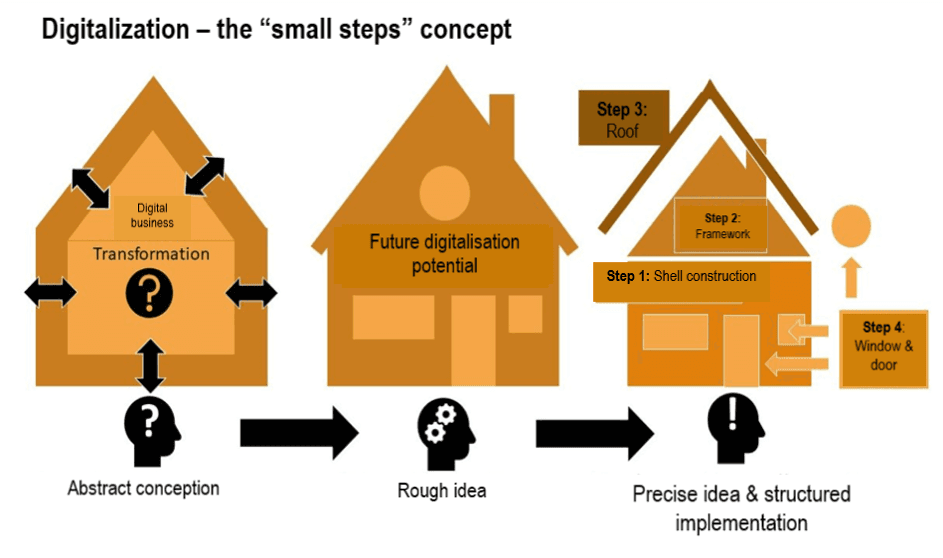 External support is helpful when it comes to making your company more digitally aware, identifying lucrative scenarios and then gradually implementing them. It doesn’t matter what your first digital projects look like. What’s important is that they are realistic and viable and can be implemented in small steps. We’ll help you do it.