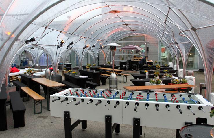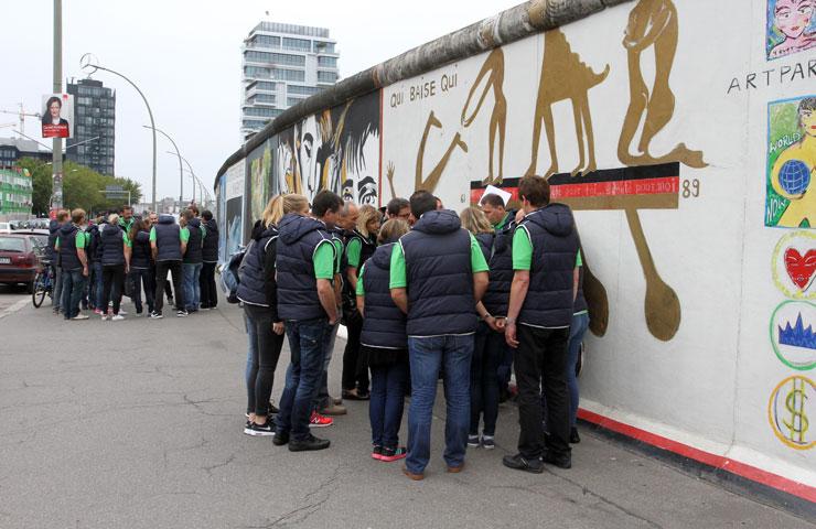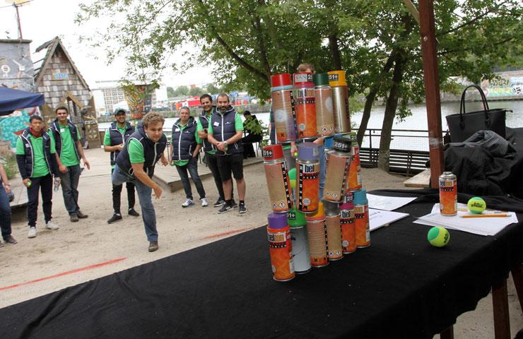 Berlin ist so etwas wie die heimliche Hauptstadt des „cornerns“. Ein bemerkenswerter Teil der Kultur findet auf der Straße statt – in Parks, auf Brücken, an U-Bahnstationen, auf Plätzen. Was liegt also näher, als den Besuch mit der hiesigen Szene vertraut zu machen? Für den sportlichen Teil der Jahreskonferenz ging es also erst einmal ins „YAAM“, einem der bekanntesten Zentren Berliner Subkultur. Eine Location zwischen Resten der Berliner Mauer, altem Industriecharme und moderner Büroarchitektur mit Blick über die Spree. Nach dem Check-in am Vormittag galt es, einen mehrstufigen Parcours zu absolvieren, der einem in puncto Teamgeist, Fitness und Geschicklichkeit alles abverlangte. Gar nicht so einfach, sich die kleinen Footbags zuzuspielen oder den Basketballkorb aus gefühlten 50 Meter Entfernung zu treffen. Besonders beliebt: Der Street Dance, bei dem man die Kollegen von einer ganz anderen Seite kennenlernte. Für jeden erbrachten „Leistungsnachweis“ gab es Punkte. Die Teams mit der besten Gesamtwertung wurden am Abend bei der Siegerehrung gefeiert. Ein Knochenjob, den alle dank Brunch, Bratwurst und Freibier unbeschadet überstanden.