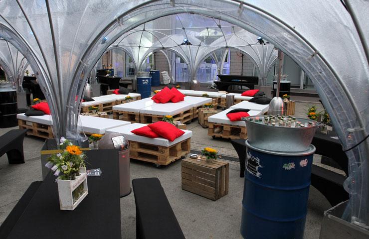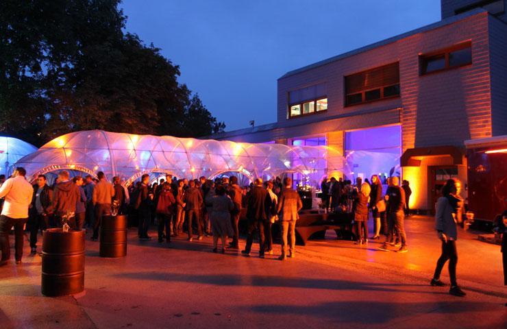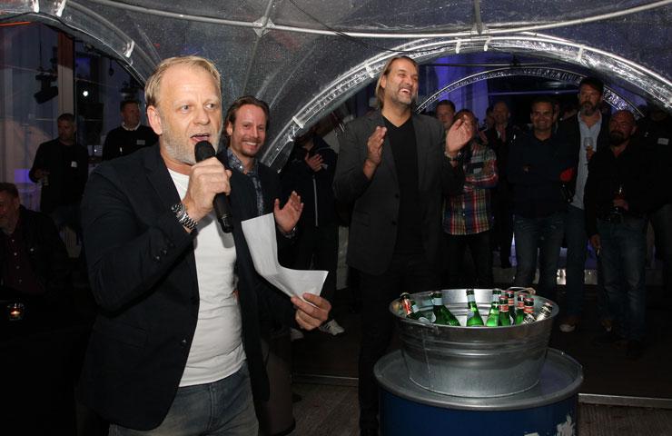 Die Party stieg dann am Abend auf einer Insel inmitten des Berliner Westhafens. Die Bridge Studios sind ein Stück Poparchitektur, das Anfang der Achtziger Jahre für das Berliner Brückenbauamt errichtet wurde. Ein Zweckbau mit Rundungen und viel Glas. In seiner Eröffnungsrede blickte Uwe Bergmann nach vorn und skizzierte kurz seine Idee von der Zukunft der COSMO CONSULT-Gruppe. Für den Rest des Abends herrschte dann eine klare, funktionale Trennung: Drinnen auf der Tanzfläche wurde die Luft schnell heiß, während draußen in der milden Berliner Sommernacht das Büfett auf Plünderung wartete. Beste Rahmenbedingungen für firmeninternes Networking oder um einfach mal wieder mit ein paar alten Bekannten zu quatschen.