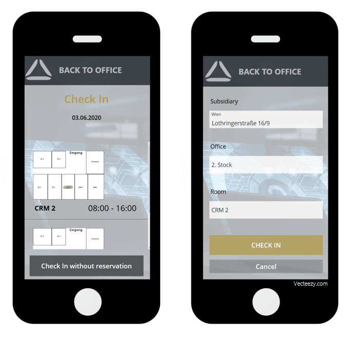 Mitarbeiter haben die Möglichkeit beim Betreten der Büroräumlichkeiten mit der mobilen „Check-In-App“ einzuchecken und damit bekannt zu geben, dass sie im Büro sind. Die Informationen werden im Hintergrund abgespeichert und sind nur Administratoren im Falle einer COVID-19 Infektion für einen Zeitraum von 14 Tagen zugänglich – danach werden die Daten gelöscht.