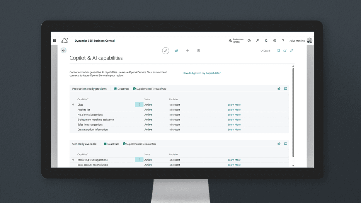 Bitte beachten Sie: Derzeit ist Copilot ausschließlich für Business Central online und nicht für On-Premises- oder Private-Cloud-Implementierungen verfügbar.