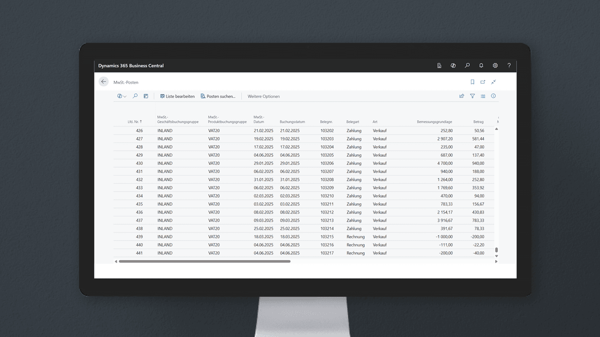 Spätestens mit dem Monats- oder Quartalsabschluss müssen diverse steuerliche Meldungen an die Finanzbehörden übermittelt werden – darunter insbesondere die Umsatzsteuervoranmeldung. Diese Schulung vermittelt Ihnen das notwendige Wissen, um die relevanten steuerlichen Einstellungen in Microsoft Dynamics 365 Business Central korrekt vorzunehmen und die Umsatzsteuerprozesse sicher zu beherrschen.