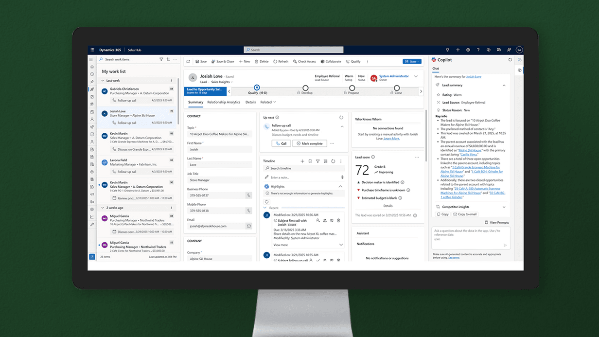 - den Copilot und Aktivitätenmanagement nutzen, um Routineaufgaben zu automatisieren und produktiver zu arbeiten