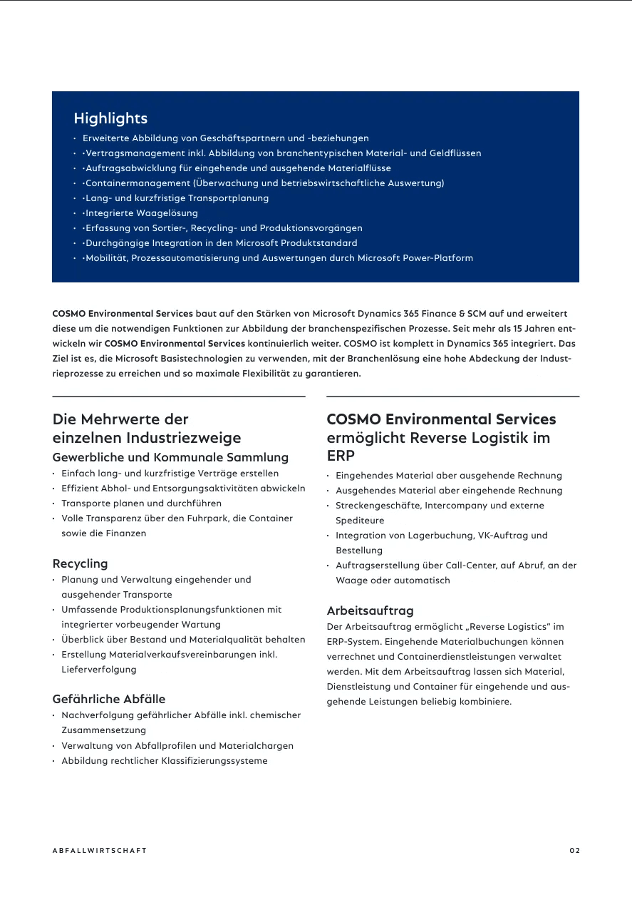 Die integrierte Lösung für Abfallwirtschaft und Recycling auf Basis von Microsoft Dynamics 365 Finance and Supply Chain Management.