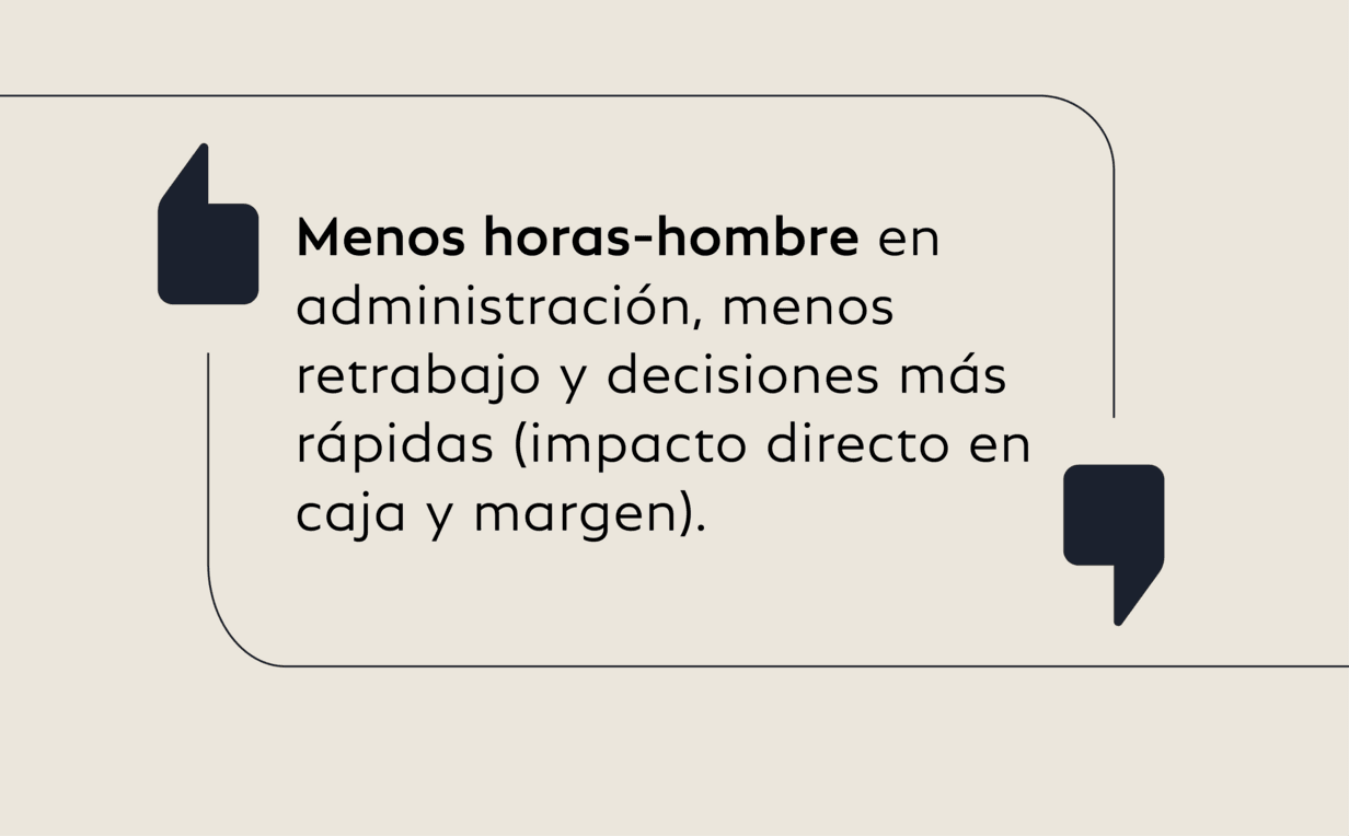El ahorro grande aparece cuando el proceso deja de depender de personas “copiando/pegando” y pasa a un flujo controlado.