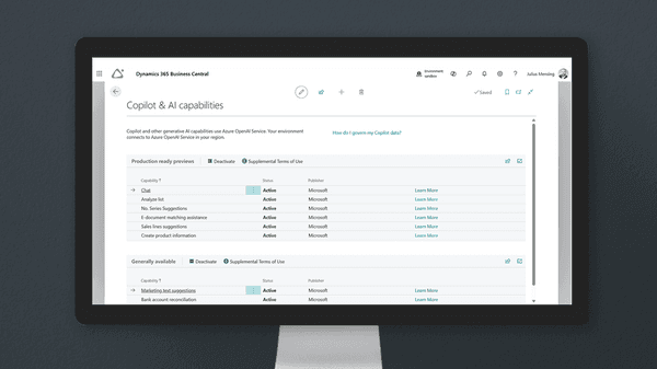 - Copilot innerhalb von Business Central einzurichten.