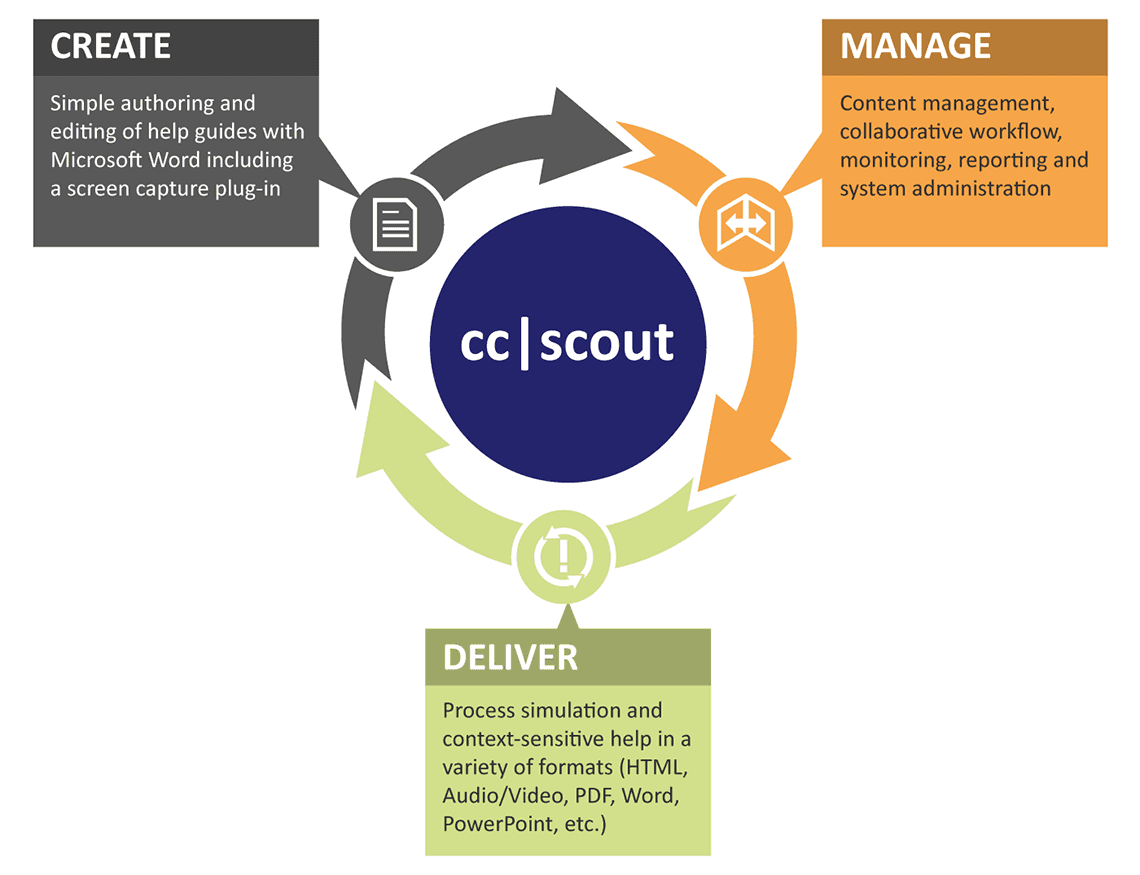 In addition to the tools for the creation and distribution of the help content, cc|scout also offers various functionalities to let you manage the documents efficiently to meet the requirements of your individual workflow such as review, feedback, approval, monitoring and reporting. With cc|scout you can also manage documentation that already exists and make it available in a context-sensitive way just like all other help documents. Beyond this, COSMO CONSULT offers additional services ranging from support with the creation of individual help content to taking on the complete preparation of documentation including hosting.