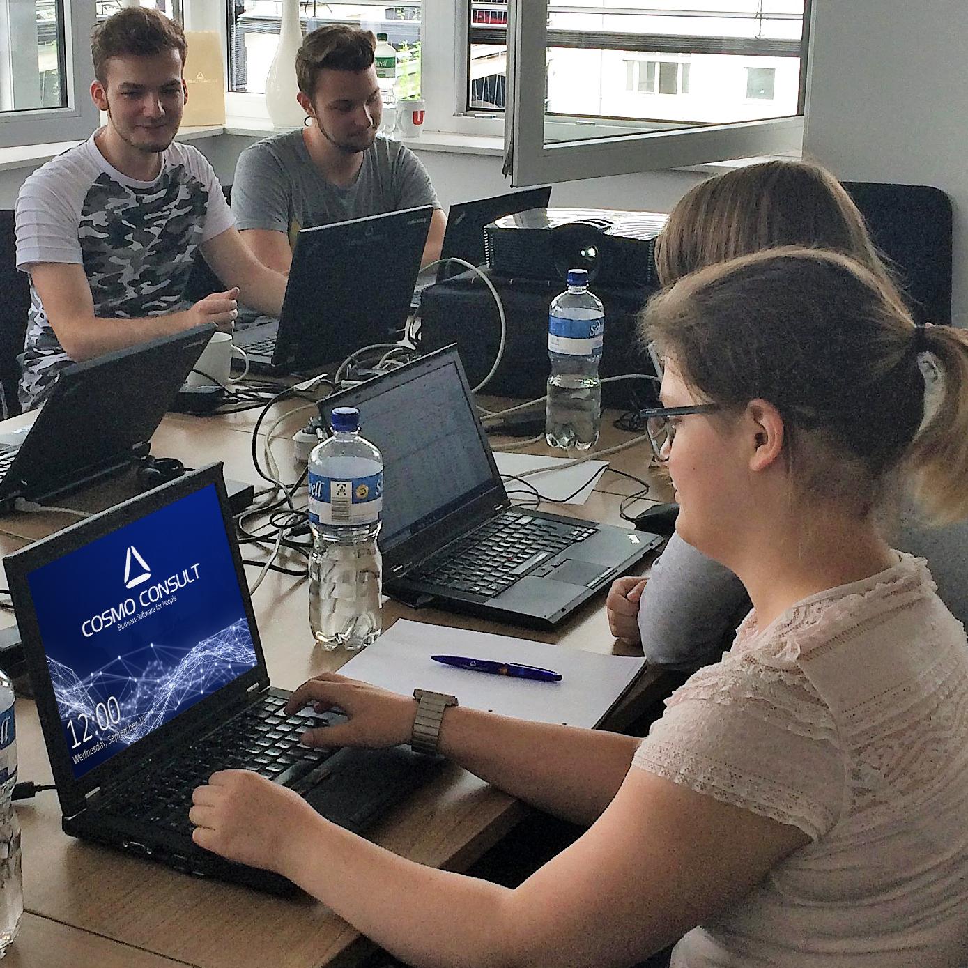 In Germany alone, COSMO CONSULT is currently preparing a total of 37 trainees, including 18 young people, in Berlin, Hamburg, Dresden, Münster and Nuremberg, to become IT specialists in application development, systems integration, business management or business communication. First, they learn about the company and the corporate culture at COSMO CONSULT, which is built on passion, creativity, mutual respect and a sense of responsibility. Afterwards, with the personal guidance of experienced colleagues, the main interest of each specialized department is fully explained.