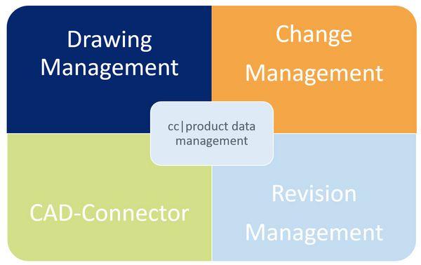With the add-on module, companies can manage technical documents from areas such as mechanical engineering, electrical engineering and electronics company-wide based on consistent rules. Drawings and documents relevant to production, purchasing or service are provided automatically, depending on the situation, during the process. Also the drawing revision after product changes will be carried out independently by the software. The most important functions of cc|product data management include: