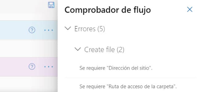 En caso de existir cualquier error, nos advertirá, apareciendo un aviso con los errores detectados y detallando en qué paso del flujo se han producido.
