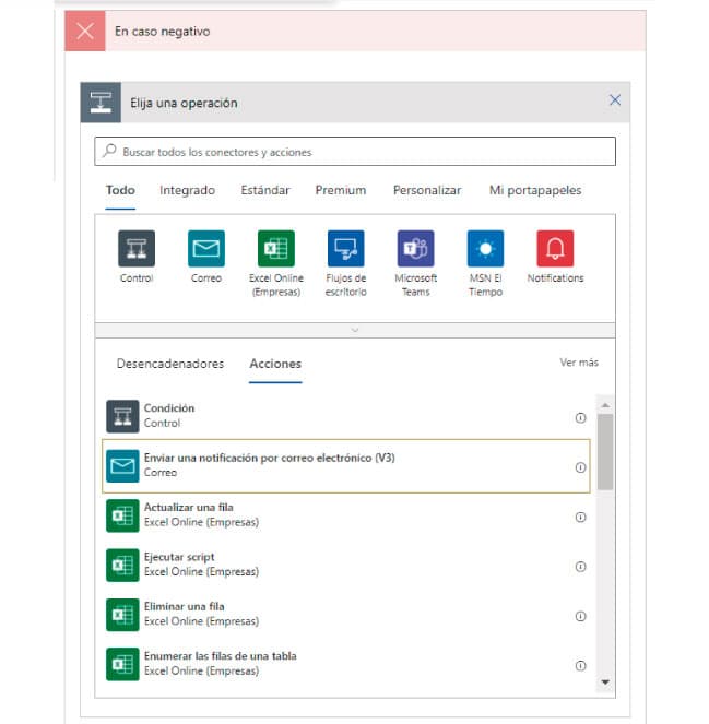 Eligiendo la operación “enviar una notificación por correo electrónico”.