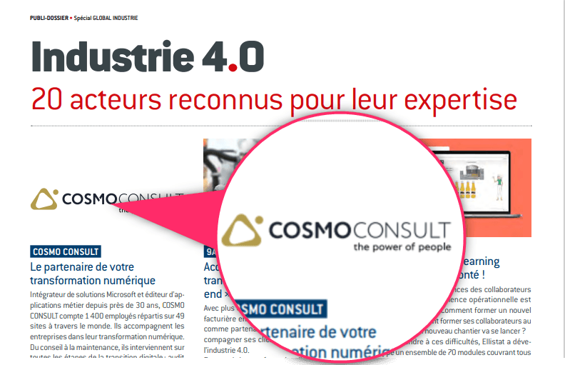 À l'occasion du salon GLOBAL INDUSTRIE 2022, le magazine L'Usine Nouvelle a publié un dossier exclusif sur les acteurs de l'industrie 4.0. COSMO CONSULT figure parmi la liste des partenaires incontournables.
