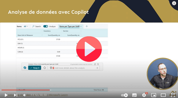 Notre expert présente en quelques minutes comment utiliser Copilot dans Business Central. Copilot dans Business central facilite la création de listes de produits pour l'e-commerce. Les attributs de produit tels que la couleur, le matériau et la taille peuvent être utilisés pour créer des descriptions de produits attrayantes en quelques secondes. Elles peuvent être personnalisées en choisissant la tonalité du texte, le format et la longueur.