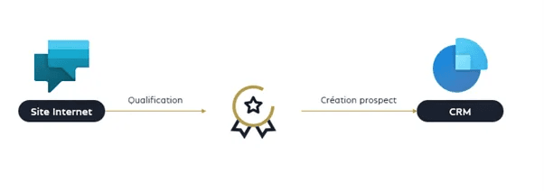 Le chatbot (ou autres agents virtuels), disponible sur votre site Internet ou autre canal de communication (Teams, Messenger etc.), permettrait alors de générer des prospects directement dans le CRM.