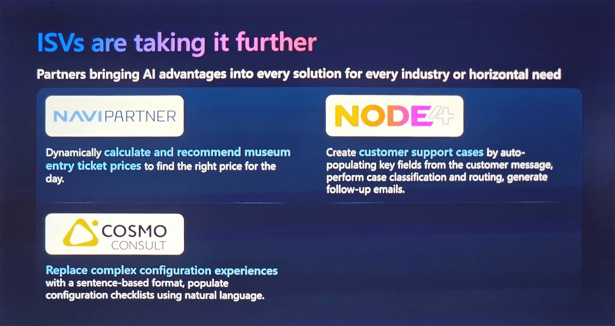 Un moment de fierté à Directions4Partners 2024 ! Lors de la keynote, Microsoft a annoncé que COSMO CONSULT développe un agent IA pour notre module de fabrication discrète - un outil révolutionnaire qui transformera le processus de vente.