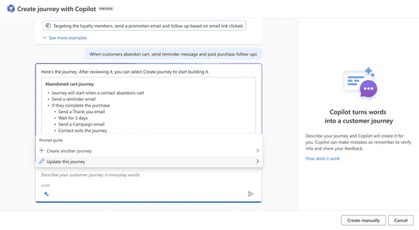 Grâce à Copilot, il est possible de créer des parcours client en quelques minutes, même si c’est la première fois, en utilisant le langage naturel. Copilot propose un résumé détaillé du parcours à créer en quelques instants.