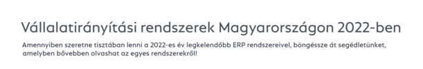 Mivel rengeteg információ kering az interneten az ERP rendszerekről, ezért összegyűjtöttük most az összes, Magyarországon fellelhető rendszerek listáját. Tapasztalataink alapján minden cégnek egyedi igényei vannak, ahogy minden ERP is egy kicsit más. A COSMO CONSULT ezúttal úgy döntött, hogy segít rendet tenni a káoszban, ezzel elősegítve a választást!