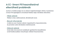 Felejtse el a manuális adatbevitelt CRM rendszerében! A CC | Smart Fill funkció segítségével néhány kattintással feltölthet minden adatot a kiválasztott cég profiljához, legyen szó: