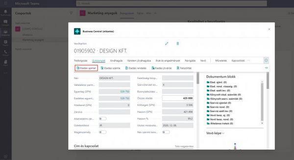 A Microsoft 365 termékek családjába tartozó Teams segítségével a munkatársak online megbeszéléseket tarthatnak, cseveghetnek, telefonhívásokat bonyolíthatnak, és a megosztott dokumentumokon is közösen dolgozhatnak. A Dynamics 365 termékek idei második frissítési hullámában most megjelent applikáció kapcsolatot teremt a Business Central kis- és középvállalati ERP megoldás és a Teams között, így a munkatársak minden eddiginél könnyebben megoszthatják az együttműködés tárgyát képező üzleti tartalmakat, és gyorsabban dönthetnek, válaszolhatnak az ügyfelek megkereséseire.