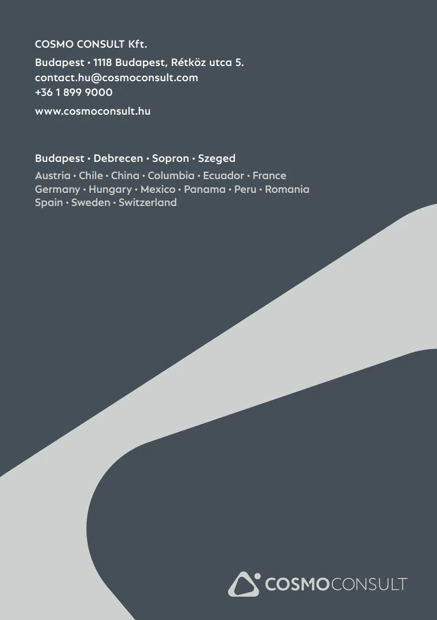 ERP bevezetést tervez? Jó helyen jár! A COSMO CONSULT megbízható és felkészült partner a Microsoft Dynamics 365 Business Central bevezetésében. Vezető Microsoft-partnerként a legmodernebb technológiát ötvözzük több iparágban szerzett, évtizedes tapasztalattal. Tudjuk, hogy egy szoftver önmagában nem elég, ezért stratégiai szinten is támogatjuk Önt: a digitális átalakulástól a folyamatfejlesztésen át a személyre szabott felhő- és bevezetési stratégiákig.