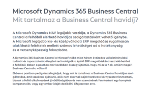 A Microsoft Dynamics 365 Business Central havidíjas előfizetésével a vállalatok teljes körű, felhőalapú ERP-megoldáshoz jutnak. Az ár tartalmazza az SQL adatbázist, a szoftverfrissítéseket, a biztonsági mentéseket és az Azure felhőkörnyezetet. Rugalmas skálázhatóságának köszönhetően a cégek könnyedén igazíthatják erőforrásaikat üzleti igényeikhez. Töltse le az összefoglalót, és ismerje meg az előfizetés minden előnyét!