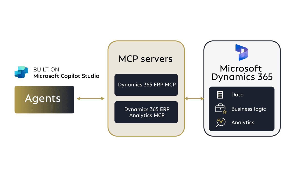 Uno de los anuncios clave fue la introducción en vista previa de los servidores MCP (Model Context Protocol) específicos para ERP. Estos servidores MCP actúan como puentes configurables entre las aplicaciones de negocio (como Dynamics 365 Finance, Supply Chain Management o Business Central) y los agentes/Copilots. En concreto: