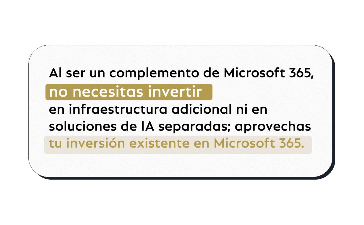 Es una inversión que puede rendir frutos inmediatos. La capacidad de generar documentos, correos o análisis con IA en segundos se traduce en horas hombre ahorradas y en oportunidades aprovechadas más rápidamente. Además, al integrarse con Microsoft 365, Copilot Business no requiere implementaciones complejas ni capacitación extensa: los empleados pueden empezar a usarlo de forma natural en las aplicaciones de Office, preguntándole a la IA en lenguaje cotidiano. Esto reduce barreras de adopción y acelera el retorno de inversión en la herramienta.