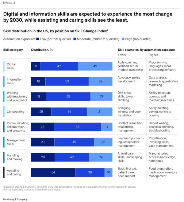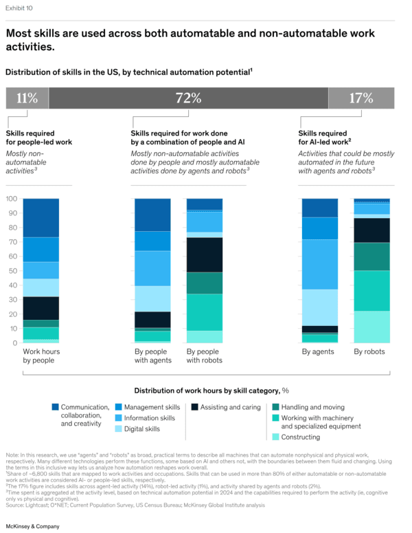 "Mer än 70 procent av de färdigheter som arbetsgivare efterfrågar idag används redan både i automationsbara och icke-automationsbara delar av arbetet."