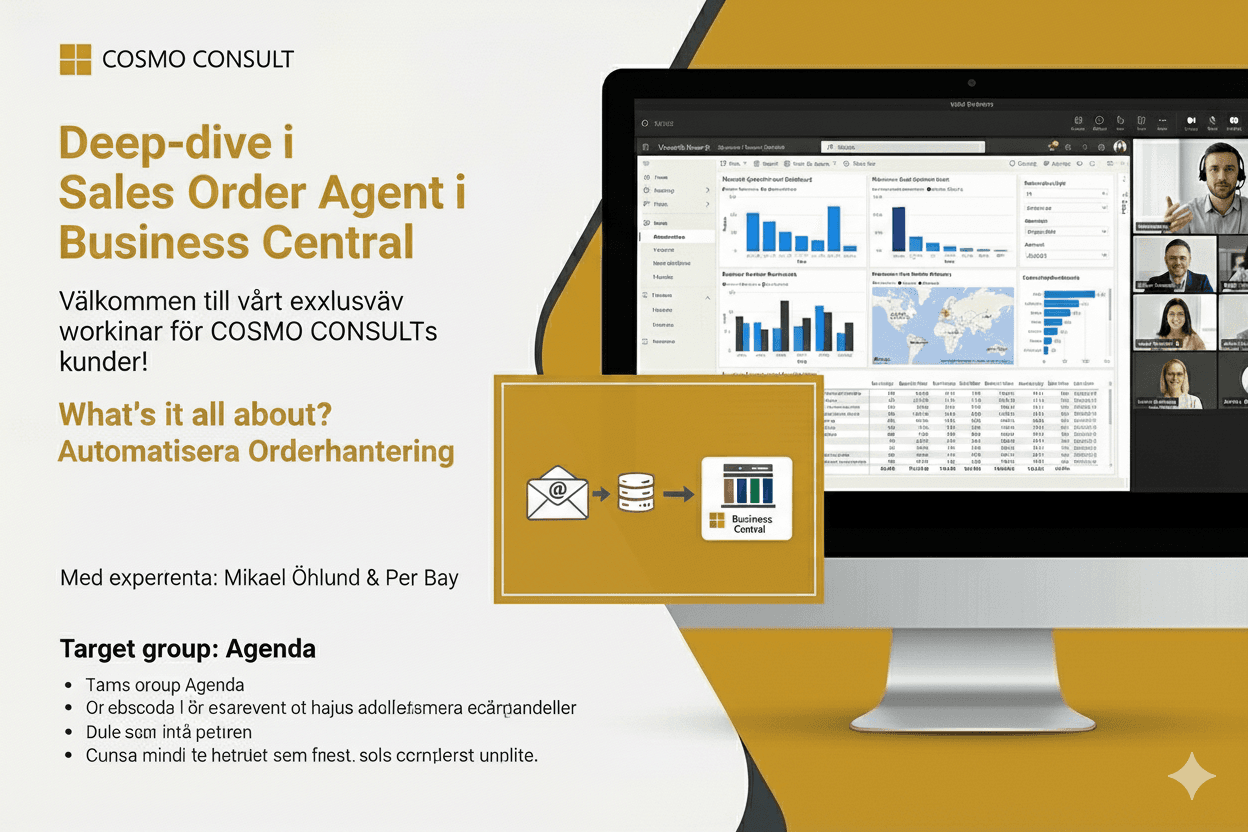 Detta workinar är en unik möjlighet för dig som är kund hos COSMO CONSULT att fördjupa dig i Microsoft Sales Order Agent i Business Central. Under denna interaktiva session kommer våra experter Mikael Öhlund och Per Bay att guida dig genom funktionerna och fördelarna med Sales Order Agent. Du får lära dig hur denna agent kan automatisera hanteringen av inkommande order via e-post, vilket sparar tid och minskar risken för manuella fel. Vi kommer att visa hur du sätter upp agenten i Business Central, vad du behöver tänka på, och hur den kan optimera dina affärsprocesser.