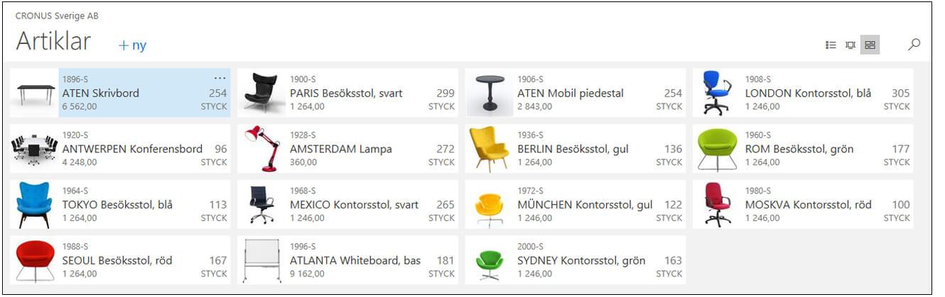 - Listor kan nu visas som Rutor(Brickor). T.ex. Artikellistan kan visas med bilder och text.